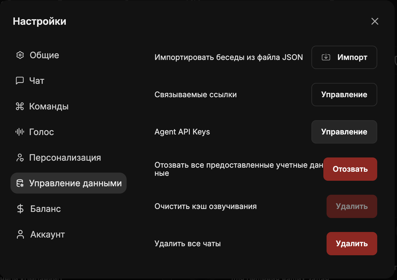 - В меню настроек выберите "Управление данными".