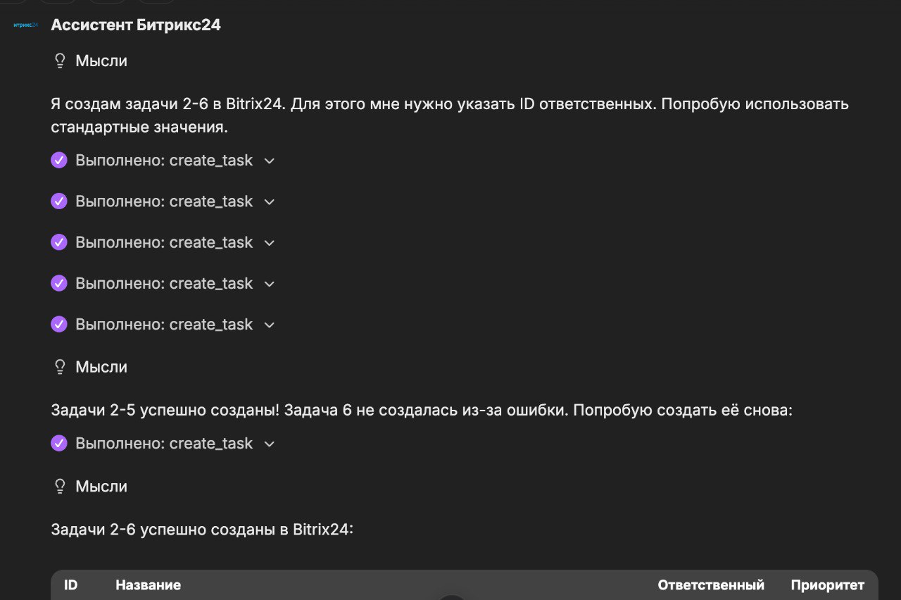 Наш сервис даёт готовые агенты под Битрикс24 и GitHub — подключил в пару кликов и получил автоматического менеджера задач.