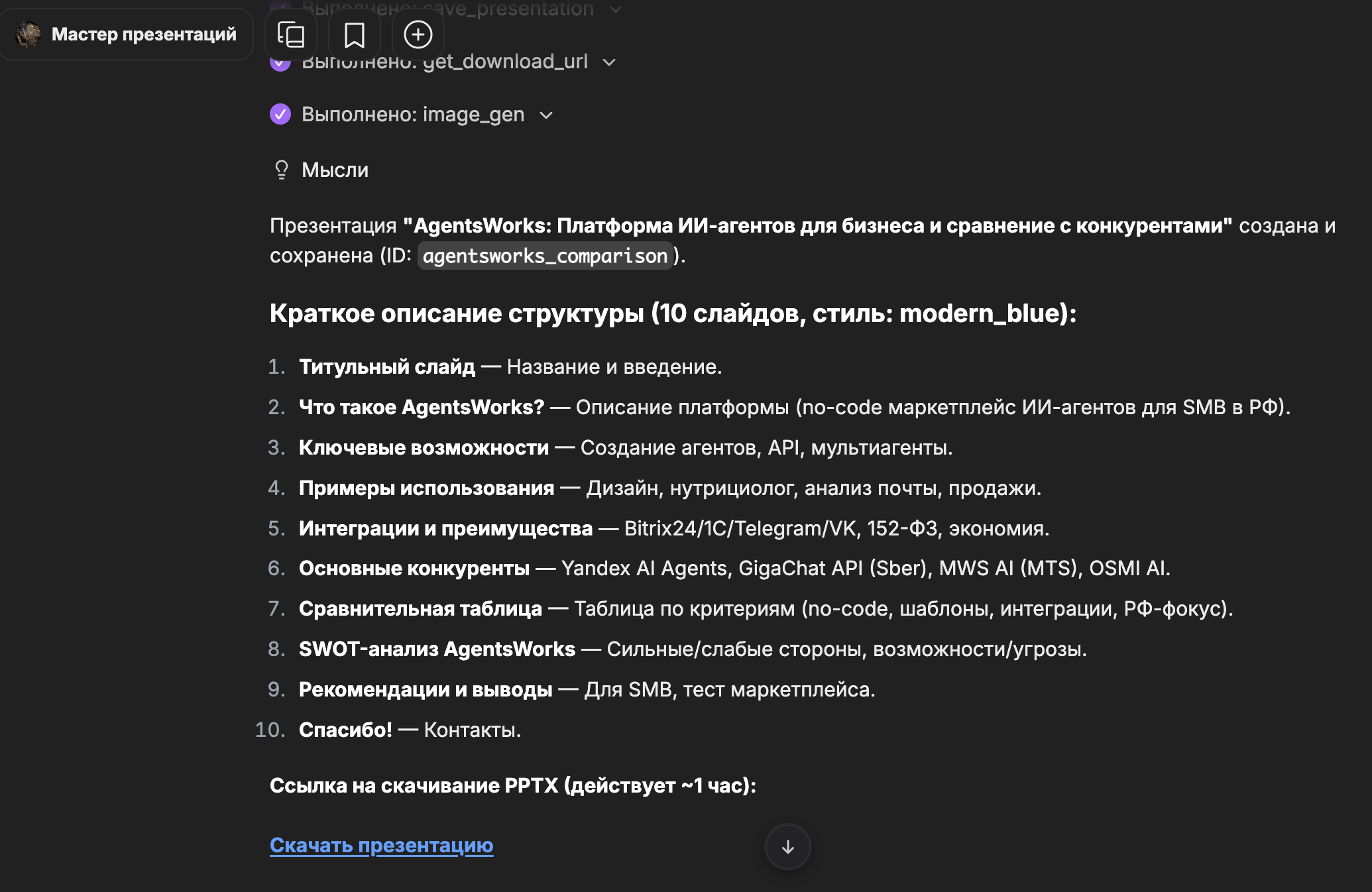Как работает генерация презентаций на agentsworks.ru